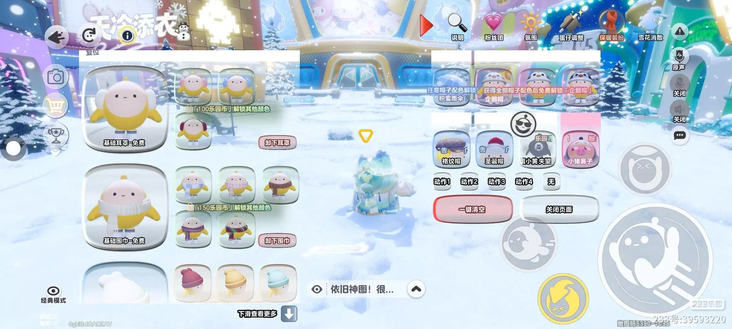 开头是作者设置的一个非常Nice的运镜❄️大家可以提前打开录屏哦~进来之后右上角有一个“保暖装扮”界面,有很多冬日装扮,大家可以根据喜好穿搭,我给大家推荐免费的耳罩和围巾~穿上之后超可爱🉑
