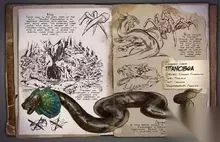 英文名:Titanoboa 食性:肉食 攻击性:强 可否驯服:可以驯服 活动范围:矿洞/沼泽 名称:雷龙