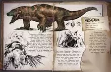 英文名:megalania 食性:肉食 攻击性:强 可否驯服:可以驯服 活动范围:洞穴/海岸/平原 名称:双坚颌龙