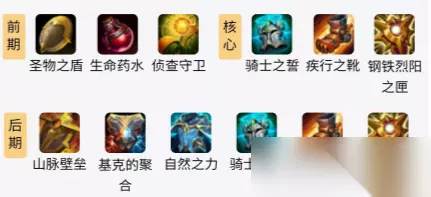 出装思路: 1、前期:牛头出门买工资装和控制守卫,工资装可以不用吃队友的经济,而控制守卫可以检查出敌方的视野。 2、中期:牛头很适合钢铁烈阳之匣这件神话装备,这件装备不仅可以给牛头提供双抗而且其神话被动还可给周围的队友提供双抗。 3、后期:在前期的装备出完之后就可以出警戒眼石这件装备来增加控制守卫的数量,基克的聚合可以链接一个友方英雄以此来增加他的攻击和伤害。 二、牛头辅助出装 1.初始装备:圣物之盾+控制守卫+侦查守卫 2.核心装备:骑士之誓+疾行之靴+钢铁烈阳之匣 3.后期装备:山脉壁垒+基克的聚合+自然之力+骑士之誓+疾行之靴+钢铁烈阳之匣(神话)