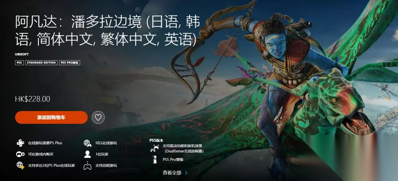 游戏简介:《阿凡达:潘多拉边境™》是款第一人称动作冒险游戏,背景设在西部边境。找回你失去的传承,从中发现身为纳威人的真正意义,然后联合其他部族,为守护潘多拉而战。Steam、Ubisoft游戏本体(标准版)¥348↘¥128(-63%)
