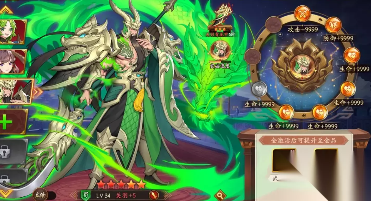 金将作为最高品质的武将,其强度与阵容搭配直接影响战斗表现。目前公认的顶级金将包括赵云、关羽、诸葛亮、周瑜、吕布、张角等,这些武将凭借高额伤害、强力控制或团队增益能力成为阵容核心。赵云作为战士型武将,主动技能龙胆亮银枪具备击杀后触发眩晕的效果,配合被动勇者之魂可显著提升队伍生存能力;关羽的三国第一神刀兼具爆发与斩杀效果,被动万夫莫敌还能全队增攻,是物理输出的标杆。诸葛亮则以八阵图提供全队攻防闪避加成,被动策略之主进一步强化团队输出效率,属于不可替代的辅助核心。