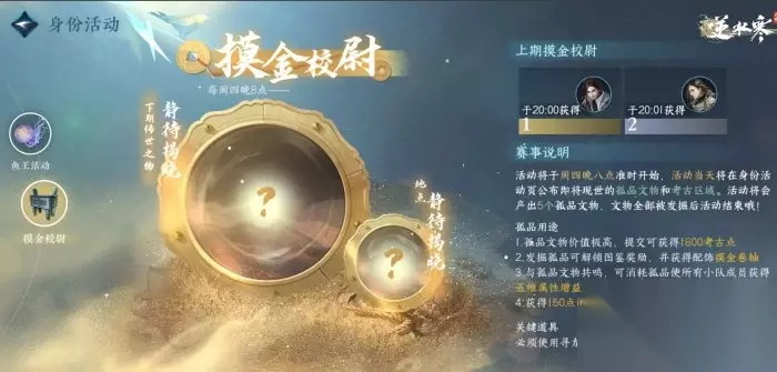 单职业长线分支成长、多职业融会贯通的交叉进化、跳脱原职业体系的全新思路...身份进阶拥有无穷无尽的可能性。 目前游戏内有数十种高阶细分身份,每一种都有独特的功能。想要进阶高阶身份,就需要您带入到江湖身份之中,体验玩法,积累经验。部分离奇身份可遇而不可求,或许需要一次奇遇、一场历练才可解锁。 三、疑问解答: 什么身份赚钱/收益高?入错行怎么办? 看到这里,想必大家已经基本了解了身份扮演玩法的基础模式。小寒再解答一下大家可能产生的疑惑: Q:我只想搞钱!什么身份赚钱、收益高? A:整体来说,所有身份的游玩都需要消耗活力,获得核心养成货币“风云令”,且速率没有太大差距。 除此之外,不同身份的特殊收益有所不同,例如演奏、舞蹈可以获得纹玉(绑),采摘、挖矿、钓鱼可以产出基础材料参与市场流程,断案身份侦破重大案件后可获得天外陨铁等等...另外还要考虑行业变化、市场波动等因素,这一点就需要您亲自判断。 Q:我入错了行怎么办? A:放心,身份扮演玩法支持兼职,不限制您选择的身份数量。您可以一条路走到黑,成为领域专精专家;也可以身兼数职,挑战成为全领域复合型人才。 不过需要注意:游玩身份玩法需要消耗活力!如果您想玩遍身份玩法,或许要注意活力值的运用。 Q:怎么优雅而低调地向别人炫耀我是XX身份专家呢? A:身份玩法将会产出专属身份道具、专属个性时装、专属身份技能,皆为限定产出,风格独特,能够直接彰显出专家的身份。 作为考古专家,您可以参与“摸金校尉”活动,发掘孤品文物,获得大量考古点...除此之外,都可以获得极为稀有的限定配饰,并且成为一时的江湖话题。