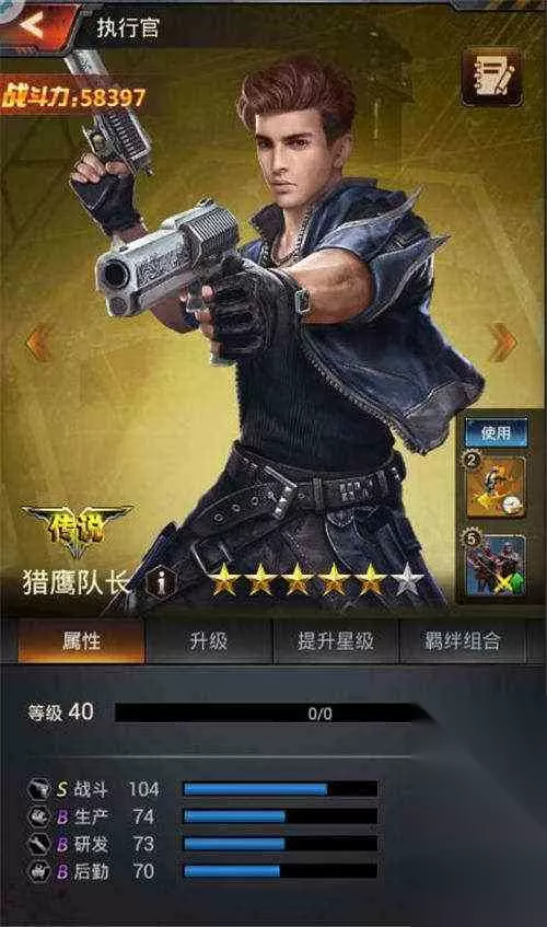 因此,指挥官们作为基地的主人,需要通过执行官的属性和被动技能来判断执行官各自适合的职位。 比如说在金色执行官中,猎鹰队长就是作为训练车兵和步兵以及出征突击队员的最佳人选之一,初级的猎鹰队长的战斗属性值就高达80点,而随着等级的提升,满级的战斗属性将高达112点,满级时的猎鹰队长能加快82.5%的招募士兵速度,同时增加68.8%的部队攻击,加上他“指派时,出征额外增加9%部队攻击”的被动技能,可以说是众多指挥官们心中的完美战斗执行官。