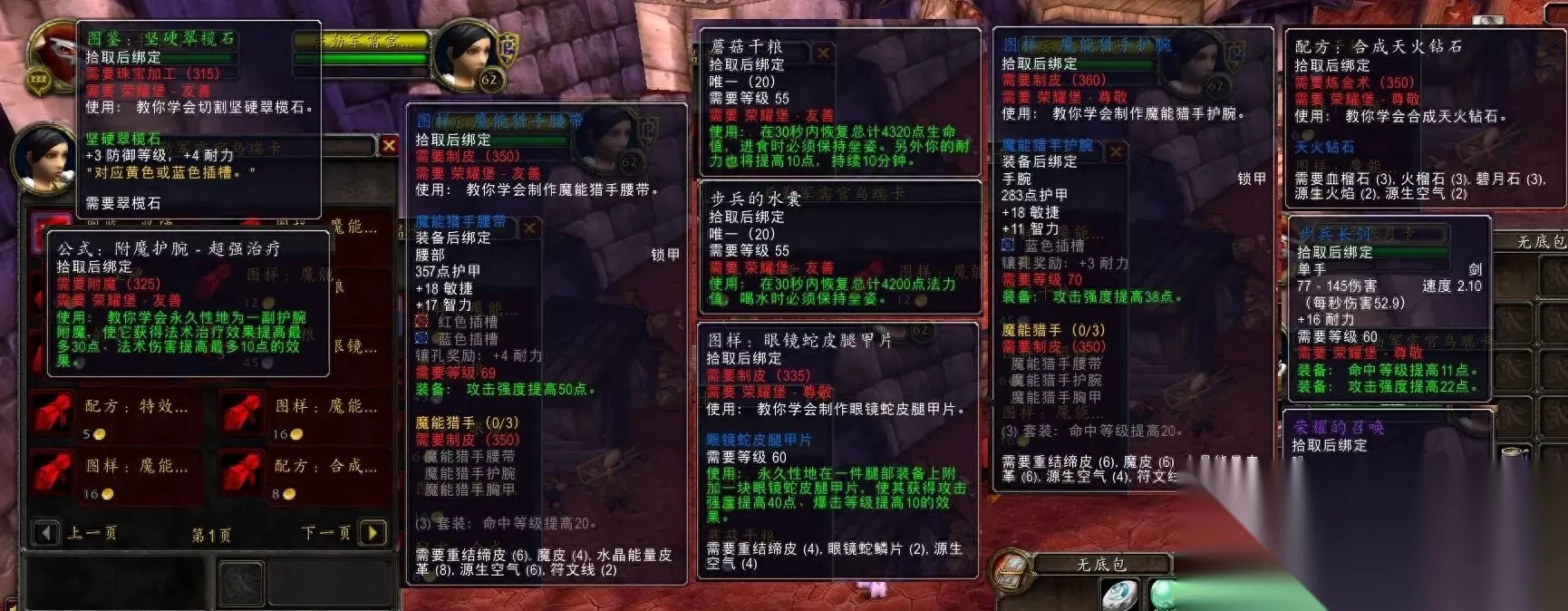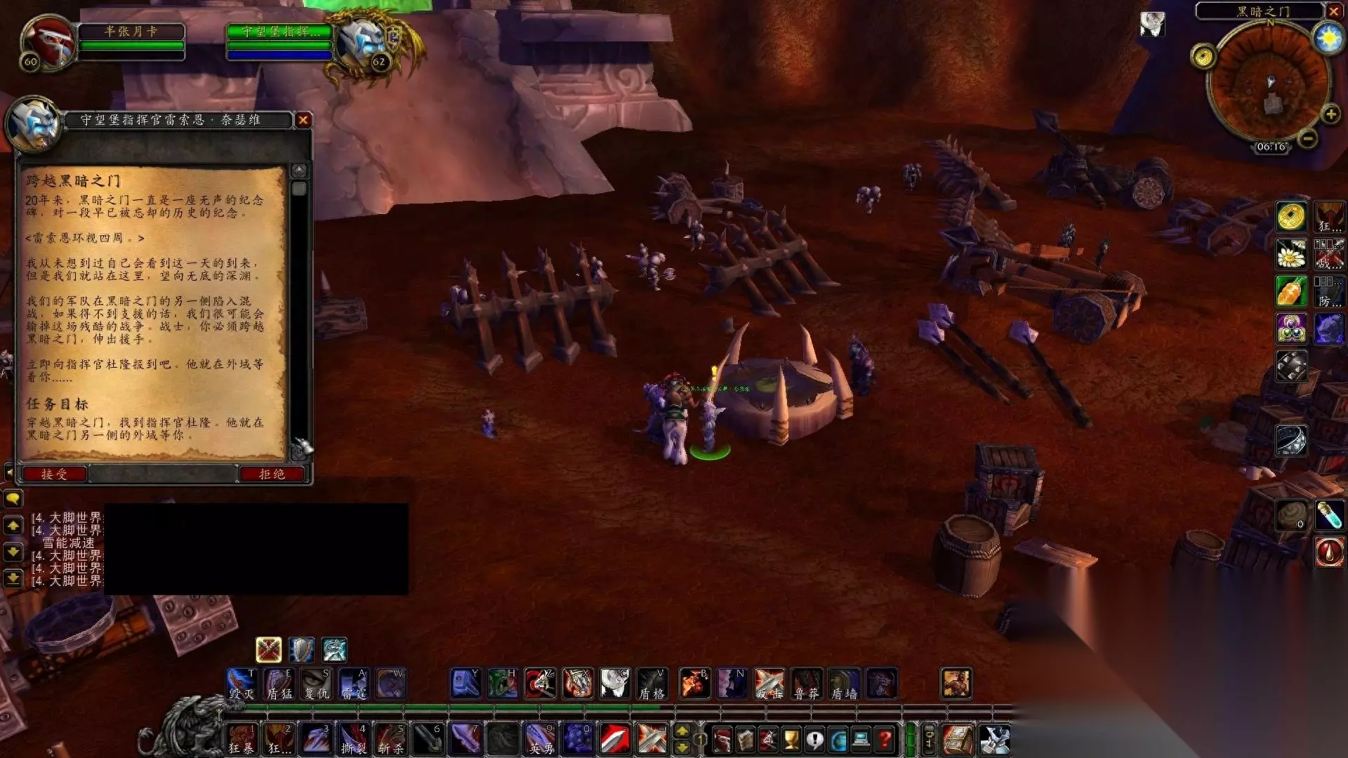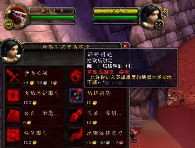 生活技能的话,一开始只能学习烹饪的,绷带需要去地图左侧,而钓鱼则在下一张地图里! 准备工作就绪后,别着急做任务呢!先喊人组队,去刷地狱火城墙!一直刷到声望友善5999!然后再回头去清任务! 要问这是为什么?因为普通5人本,在你声望到达尊敬以后击杀怪物就没有声望了!所以说,先刷副本,顶到声望友善5999,再去清任务,不会浪费!要知道开启英雄本都是需要对应阵营的钥匙!而钥匙都是需要声望崇敬才可以购买!