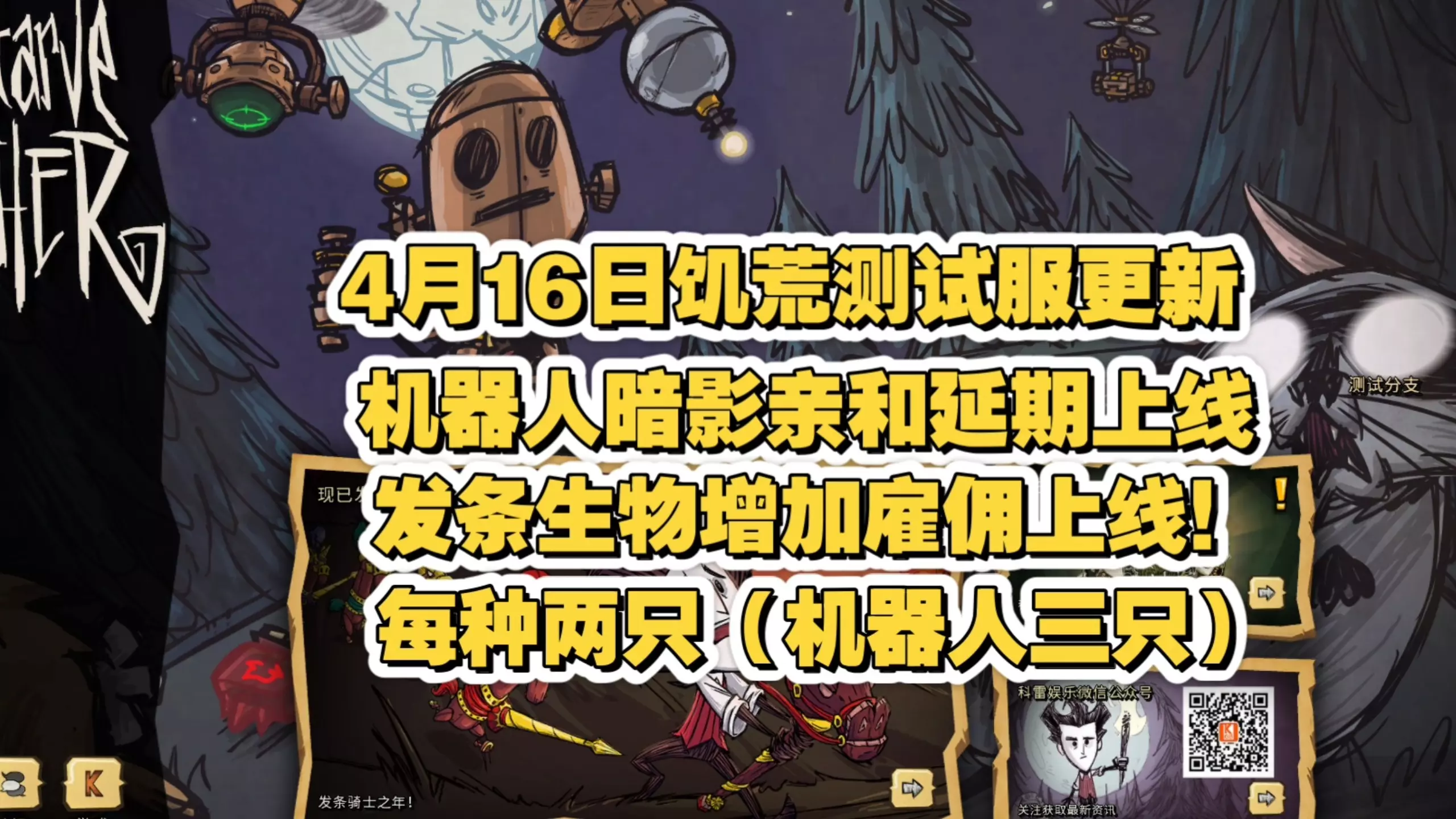 改动 · 添加了棋手法则电路。 · 将“实地调查 II”技能替换为“信号增强器”技能,该技能可提升无人机范围(而不仅仅是旋转地图器)。 · 旋转地图器现在功能类似于奥克维吉尔,但仅对所有者可见。 · 备用底盘现在会记住其状态(例如生命值、饥饿值、理智值、豆豆增压护盾)。 · 傀儡底盘改动: · 跟随玩家时更为紧密。 · 可以打开查看其物品栏。 · 使用自身物品栏中的修理包修理虚空布甲、亮辉甲和 W.A.R.B.I.S. 装备。 · 死亡时会像 WX-78 一样掉落部分已吃下的齿轮。 · 现在可以使用电击遥控器并协助战斗。 · 能识别控制电击遥控器的领袖发出的攻击指令。 · 能与领袖一起起锚、降下船帆、划船以及浸泡在温泉中。 · 获得了复制领袖表情的终极力量。 · 暗影侍从改动: · 请注意,未列出的某些效果没有重大变化,有些效果已根据你植入的是某种暗影燃料还是某种暗影心房而拆分。 · 纯粹恐惧现在可以植入 WX-78。 · 植入梦魇燃料或纯粹恐惧会解锁“自动抓取”无人机,替换暗影收割效果。 · 植入暗影心房或被附身的暗影心房会解锁“阐释者”无人机,替换暗影“鞭笞”减益效果。 · 拥有任意暗影植入物时,WX-78 可以消耗梦魇燃料或纯粹恐惧来获得短暂的紧急能量爆发(例如,临时将电量覆盖为最大功率,但不会实际充能底层电量)。 · 激活的温度电路会防止相应的过热和/或冻结覆盖层及动画。 · 耐热电路与制冷电路的物品腐烂速度衰减现在可以叠加(例如,2 个制冷电路意味着 WX-78 物品栏中的腐烂速度减半)。 · W.A.R.B.I.S. 护甲和头具的锁定目标范围现在可通过贝塔电路改装 I 被范围增强电路增加。 · 生物扫描仪在寻路时将忽略墙体。 · 喷水壶现在可以对营养砖使用。 · 为备用底盘添加了独特的检查台词。 Bug 修复 · 修复了复活玩家时角色滑动的问题。 · 修复了处理电路的技能效果对负面衣冠楚楚物品生效的问题。 · 修复了当 WX-78 插入两个耐热电路时温度过高导致的网络问题。 · 修复了在阿尔法电路改装 I 状态下,豆豆增压电路的理智光环修正未生效的问题。 · 修复了在切换底盘时光电电路效果残留的问题。 · 修复了拔下超级胃增容电路时饥饿率修正未能完全复原的情况。 · 修复了攻击正在格挡的傀儡底盘时发生的崩溃。 · 修复了傀儡底盘没有播放吃齿轮音效的问题。 · 修复了傀儡底盘缺少被电击、击退、滑倒等状态及反应动画的问题。 · 修复了对玩家友好的陷阱(例如牙齿陷阱)会触发在傀儡底盘上的问题。 · 修复了傀儡底盘在使用骑枪时某些面向会隐身的问题。 · 修复了傀儡底盘在死亡或消失过程中被卸载时没有立即休眠的问题。 · 修复了傀儡底盘没有正确继承其生成来源的备用底盘的皮肤的问题。 · 修复了生物扫描仪在被猫狸击倒时同时吐出生物数据导致的崩溃。 · 修复了“瓦特飙升”技能效果在初始生成时未生效的问题。 · 修复了被 WX-78 旋转砍倒的常青树或树枝树重新出现的问题。 · 修复了 WX-78 本应掉落备用底盘时却被虚空面具附身的问题。 · 修复了被虚空面具附身的生物被另一个被附身生物杀死后再次被虚空面具附身的问题。 · 修复了与暗影麦斯威尔相关的物品复制漏洞。 · 麋鹿鹅形态的冲撞和河狸形态的尾鞭将不再伤害盟友。 · 修复了友好的咕噜蜜蜂攻击友好的发条生物的问题。 · 修复了沃比的变形状态被吃东西打断的问题。 · 修复了默认胡须在“所属”面板中被排序筛选打乱的问题。 · 修复了破烂战猪的擒抱攻击被打断时偶尔崩溃的问题。 · 修复了甲壳蜗牛在烹饪时播放鼹鼠死亡音效的问题。 · 修复了粘土座狼和姜饼座狼不免疫电击的问题。 · 修复了死亡生物实体在屏幕外持续存在的问题。