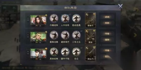 再来说【其徐如林】的第二个效果,为友军二人施加几率规避效果。 这个效果的施加范围是姜维最令人诟病的问题。这个效果只会为友方二人施加,也就是说姜维本身是无法吃到这个几率规避的效果加成的,这意味着姜维的战法无法为姜维提供任何保护。 这使得姜维即使拥有较好的数据面板,也很难成为一个合格的前锋。没有保命能力在前锋这个位置里是非常致命的——尤其是姜维的数据面板的优秀,只是相对于辅助武将,尤其是规避三兄弟(孙权、荀攸和姜维)而言。 而在一般情况下姜维的战法位都是携带【始计】来保证加成的稳定释放,但是始计并不能为姜维提供保护效果,使得姜维经常性的暴毙。 所以在经过几个赛季末的短暂尝试后,我果断放弃了传统【始计浑水】体系的战法配套模式,从而考虑携带减伤战法。 我又考虑并尝试了【步步为营】和【空城】两大战法,但是结果都达不到预期效果。 【空城】只能保护前期两回合,在蜀步这种抗线队伍中实在是作用不大。而【步步为营】虽然叠加起来后效果强大且持久,但是在现版本前三回合爆发伤害溢出的情况下,根本没有机会将【步步为营】叠加起来。 于是我终于把罪恶的目光投向了一直被【垒实迎击】遮住了自身光芒的【健卒不殆】。 【健卒不殆】的效果是再受到伤害的情况下有百分之五十的几率为自身减伤,在现版本反击效果被砍到几乎完全不能用。并且姜维首要属性是谋略的情况下,我一开始并没有思考到为姜维携带【健卒不殆】,但是经过尝试后我发现【健卒不殆】非常的契合姜维,无需叠加即时生效的五成几率减伤,配合刘备的【避其锋芒】和【皇裔流离】直接让姜维站住了脚,即是是在面对传统蜀骑的斩手行动中依然可以坚持到最后。 而使用【合众】也是在多次队伍的战法重组和兵种更改后的选择,原本曾使用【浑水摸鱼】和【擅兵不寡】等战法,但后因为现在版本各类先驱法刀满地走,关妹转重步兵并不能很好的适应战场需求,所以在考虑到其他队伍的战法占用情况、兵种转职和姜维本身对先手的依赖后,我选择了效果还算不错的【合众】作为折中。 就这样我对姜维的战法以及定位进行了最终敲定,使用【健卒不殆】与【合众】为姜维提供保命基石再依靠【其徐如林】对整体队伍属性进行加强。 · 中军:刘备 · 自带战法:【皇裔流离】 · 推荐携带战法:【避其锋芒】【三军之众】 昭烈皇帝率土第一奶妈自带战法【皇裔流离】在我军受到伤害后有几率为我军恢复一定的生命值,率土第一神技无需多说,再加上【避其锋芒】和精准制导的【三军之众】是足够保住姜维前三回合无失的,不过我在这里要提到的是,刘备虽然强大但和姜维的主战法并不是一对最佳拍档,在实际测试后我发现此队使用张机甚至反计甄洛的效果都确实要比使用刘备的效果好上不少,但是因为整体主城队伍原因相关战法和武将的无法替换给此队,确实遗憾。 · 大营:关银屏 · 自带战法:【巾帼战阵】 · 携带战法:【人中吕布】【愈战愈勇】 关妹的巾帼战阵为主动战法,她是目前蜀国核心输出里吃拐率最高的武将,也就是说关妹这个武将可以最大限度的吃上姜维提供的加成(›´ω`‹ ),因为自带战法为主动战法且释放几率为百分之一百,所以只要不被控,关妹就可以稳稳当当的接住姜维提供的属性加成而不会造成浪费使得整体的队伍布置做了无用功。而使用【人中吕布】和【愈战愈勇】而不使用【一骑当千】和【击势】的原因是因为本队主要需求是拖平所以我尽量考虑了为其他队伍腾出战法并且【人中吕布】的各类debuff效果确实很实用有效。 宝物推荐 俺没有宝物,所以俺找了盟里的“专业”人士咨询,在“专业”人士的建议和我的个人使用体验上来说我进行了以下推荐(宝物词条名字我连在一起了,随意搭配都可使用,我仅仅列出了我感觉相对来说比较好的宝物和词条): 关妹:真刚破敌 彤素至策 悬翦亢厉 刘备:博浪仁心 别鸣艮止 仁风坚忍 姜维:博浪机敏 别鸣艮止 仁风坚忍 战报鉴赏 这队总体来说战绩四六开,而且算是个前期队伍|•'-'•)و✧
