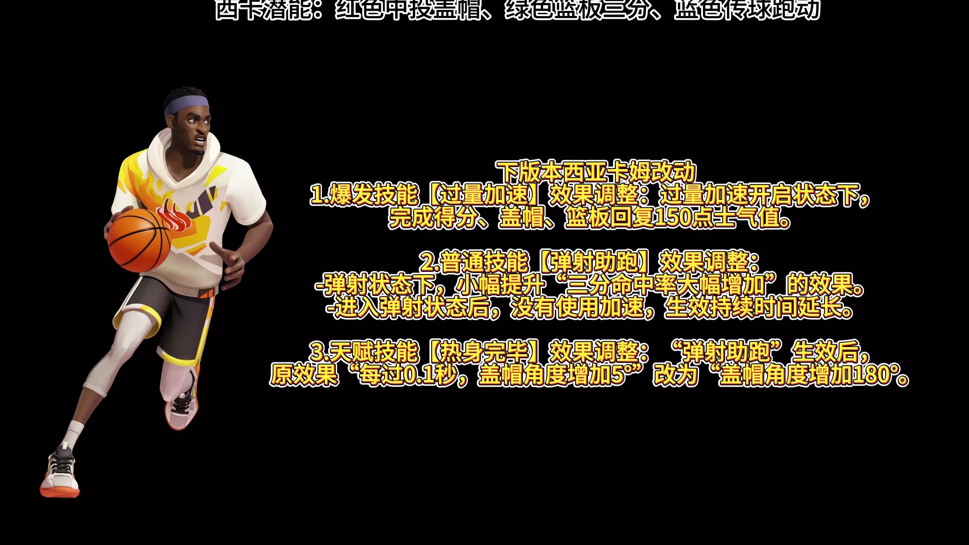 这是《全明星街球派对》的西亚卡姆主攻教学上篇技能教学内容,详解了西亚卡姆的过量加速大招、弹射助跑核心被动等技能效果,还搭配了潜能搭配建议,助力玩家掌握该球员的技能玩法。