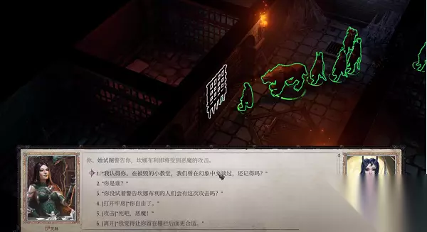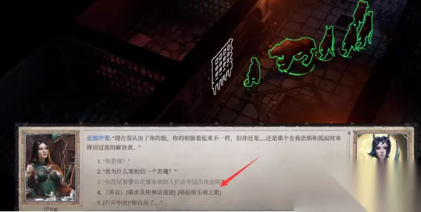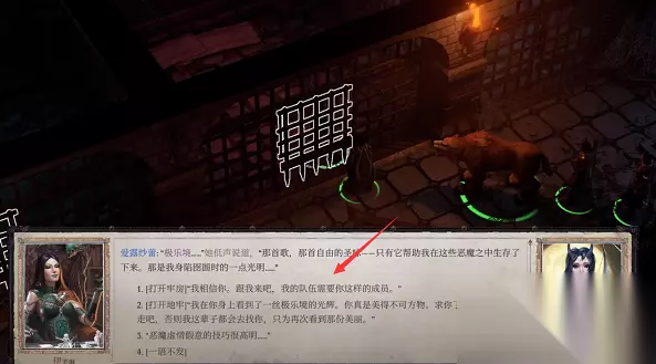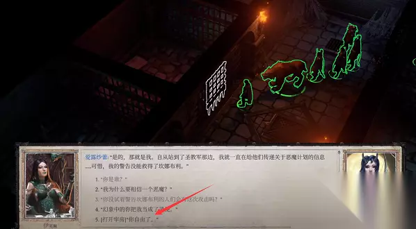 5、完成上述操作后,前往地牢找到爱露莎蕾对话,会发现多了一个曾在幻象中交谈过的选项,选择它。