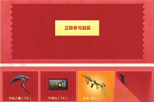 CF春节火线刮刮乐活动在哪参加?春节假期虽然已经结束,但是CF的相关活动还在继续,本期的活动可以免费抽取永久烈龙悦心,下面小编就带来了CF春节火线刮刮乐活动介绍,一起来看看吧! CF春节火线刮刮乐活动 活动时间:2.11-2.28 活动内容: 活动期间,登录App活动页面,可根据对应身份领取1份新春特权礼,奖励如下: M37-恶棍(7天)、尼泊尔军刀(7天)、防弹衣(7天)