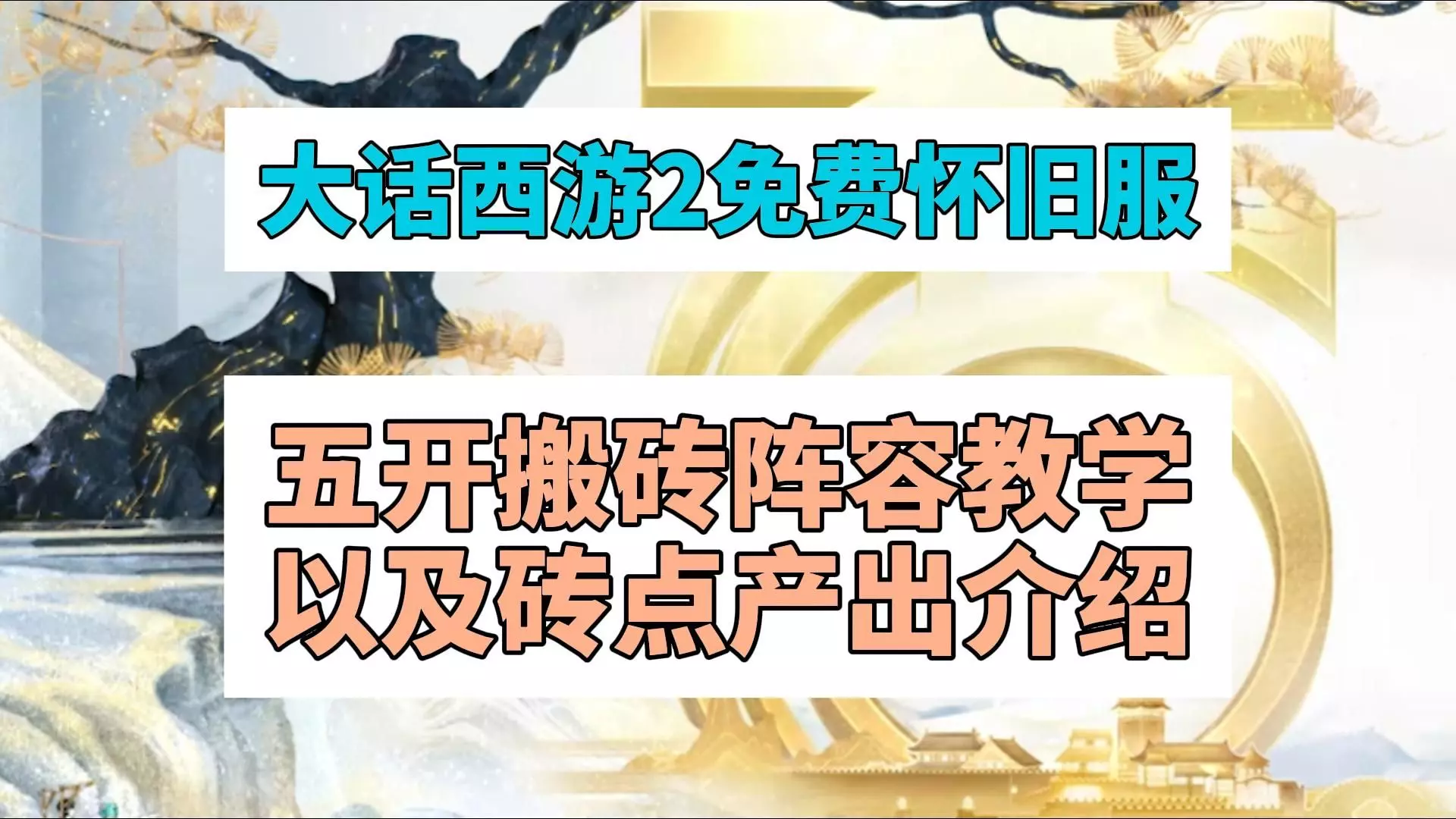 这是《大话西游2免费怀旧服》的游戏解说,分享了适合搬砖的万金油五开阵容,还讲解了让宠物物理抗性达到75%的相关教程,助力玩家在游戏里高效搬砖。