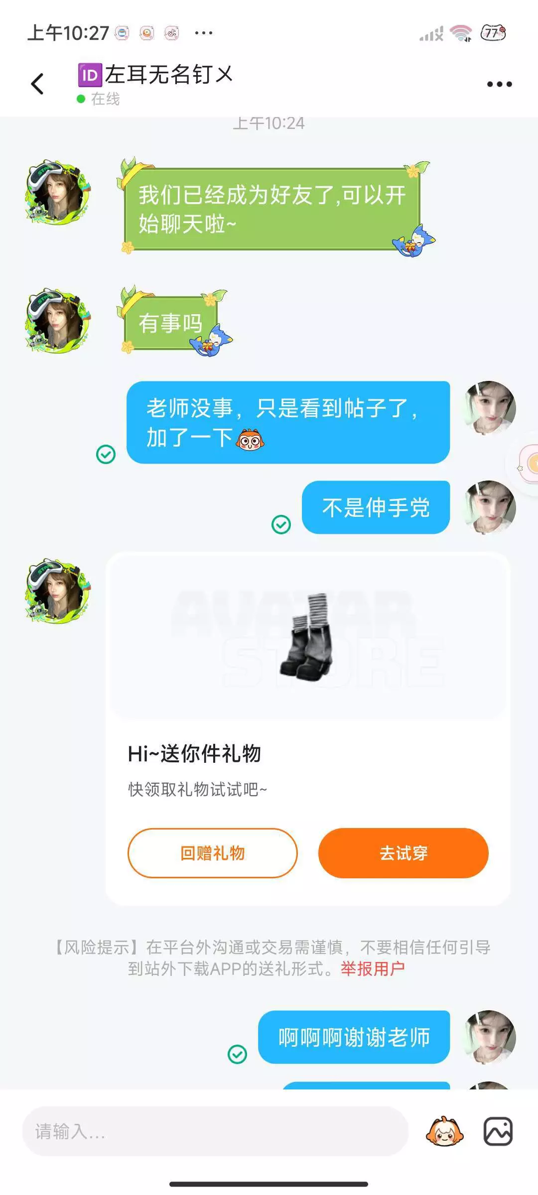 是这位美女姐姐送的