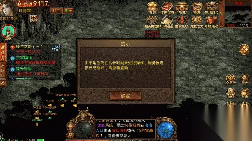 这一款获得青睐的主要原因是有几个: 第一,它在传统的传奇游戏基础上,加上了国风仙侠修真的某些特质,十分富有浪漫情怀。 第二,画面和人物相对来说比较精美,戳中了颜控的小红心 第三,复杂的游戏设定和较高的可玩性,以及个人体会装备掉率还不错,值得一玩 进入游戏之后,一路顺着主线任务轻轻松松到了二转,这个时候要刷三转材料选择了禁地魔穴,这里的怪物打起来有点小麻烦,有时候一个不注意就会让自己“狗带”。