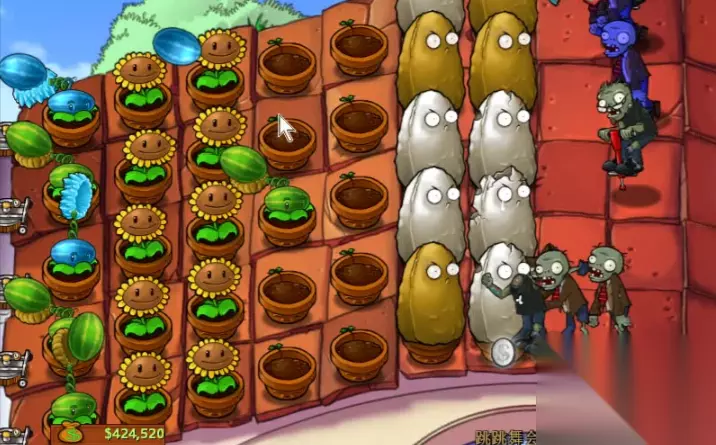 进入中期后,防御体系的核心是磁力菇与高坚果的协同。磁力菇必须被种植在阵地中段,并使用咖啡豆激活其在白天的能力,它能有效吸走跳跳僵尸的弹跳杆,使其丧失跳跃能力变为移动缓慢的普通僵尸。你需要在攻击植物前方成列布置高坚果,它们是无法被跳跃的坚实屏障。火力输出方面,在阳光充裕后,应优先在靠后位置成排种植西瓜投手或冰瓜投手,它们能提供可观的范围伤害与减速效果。