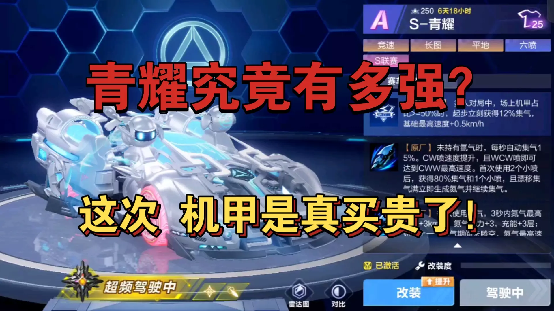 这是QQ飞车手游的新联赛车S-青耀的首测内容,马总在直播间试跑该车,它拥有无阈值集气、CW提速的强力特性,试跑呈现出的跑法优势明显,被称为“轮椅”神车。
