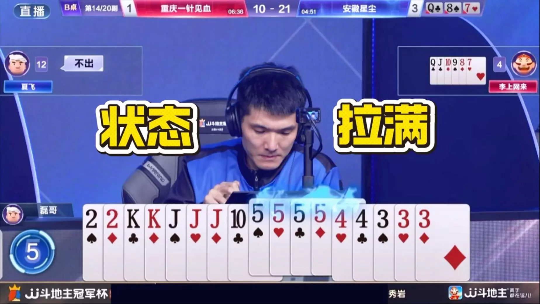 JJ斗地主北京睿翼精英夺冠精彩牌局各主播不同视角第五集
