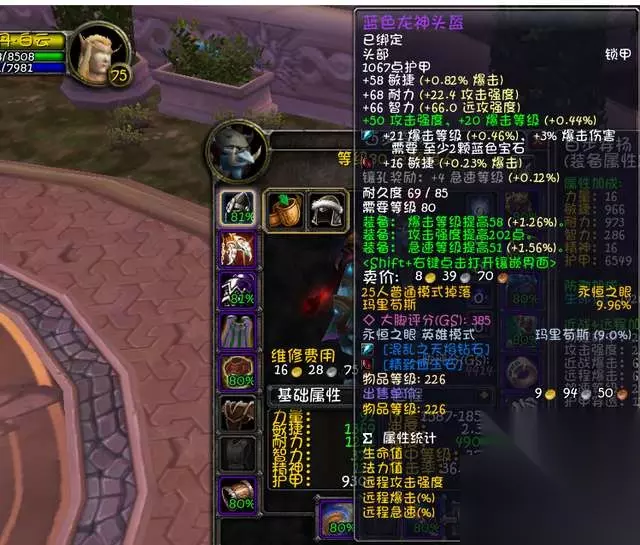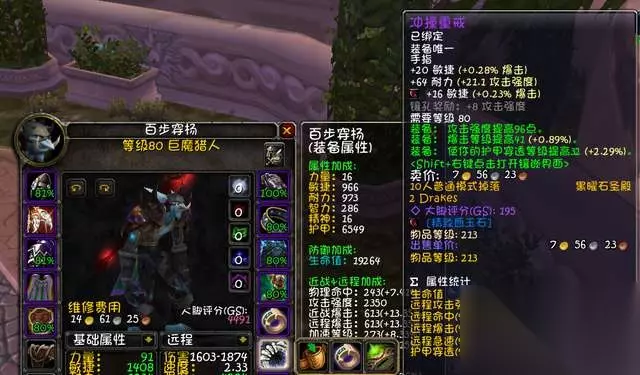 25人永恒之眼掉落,226装等。 戒指:强力指环+冲撞重戒。