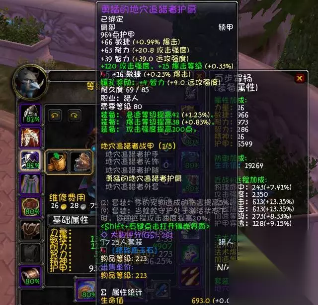T7肩膀是猎人最好的肩膀,但是猎人套装属性全都一般,2件套提高宠物伤害5%,由于宠物伤害占比仅有12%左右,因此这个套装属性提升很一般,4件套更是没什么用,猎人很少用到蝰蛇守护。 披风:极冬披风。