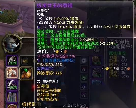 25人永恒之眼任务物品兑换,226装等,所有物理系毕业项链。 肩膀:T7肩膀。