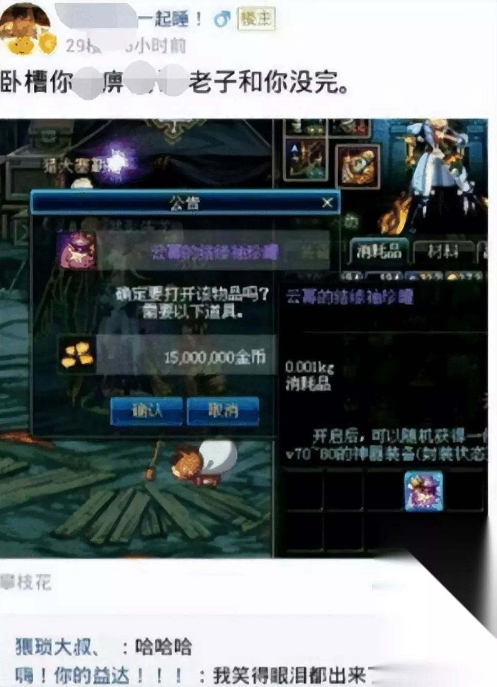 而其实当年很多的罐子都有这个套路,那时候很多罐子虽然卖的非常便宜,但这些罐子可都是需要开罐费的啊,而且基本上都是需要上千万金币。所以很多玩家刷到了这个罐子都是直接丢掉的,这根本开不起啊。