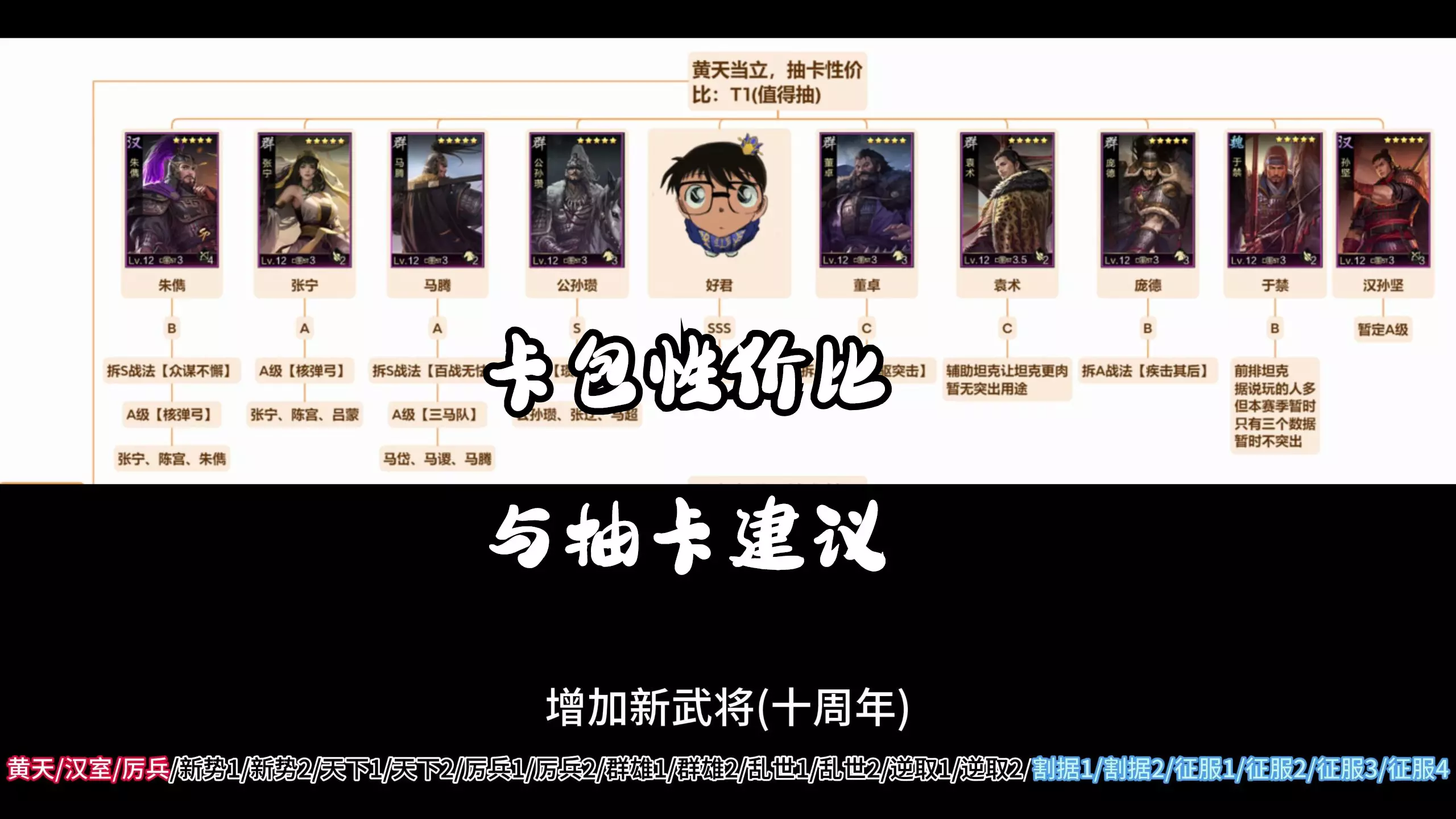 这是一篇游戏杂谈,对《王于兴师》s1、s2赛季的武将进行评级盘点,将武将分为夯、顶尖、人上人、NPC、拉完了五个等级,还介绍了部分武将的特点与适用玩法。