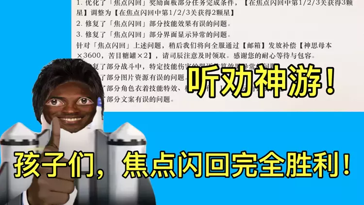 这篇帖子针对游戏《1999》的焦点闪回更新进行说明,本次更新优化了焦点闪回的任务完成条件,降低了拿奖励的星级要求,还修复了该玩法的多项问题并发放补偿,但玩家认为补偿力度不足,且官方暂不考虑删除焦点闪回补偿。