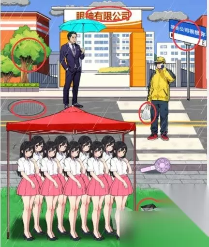 2、先拖动小风扇到老板,然后拖动老板的伞给女孩 3、井盖拖走后,再拖动下面工人的安全帽给女孩 以上就是就我眼神好雨天回家帮助女孩回家通关攻略了,玩法还是比较简单的,没有繁琐的步骤,拖动正确的物品给女孩即可顺利通关!