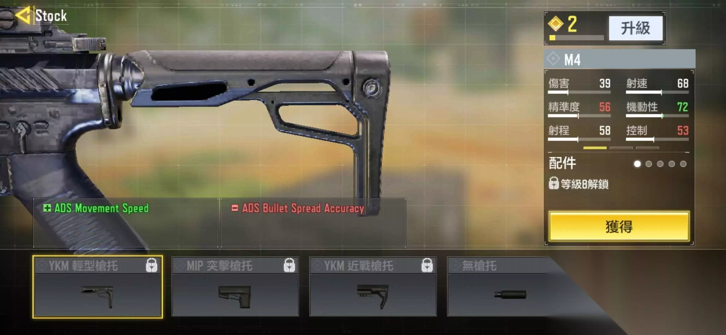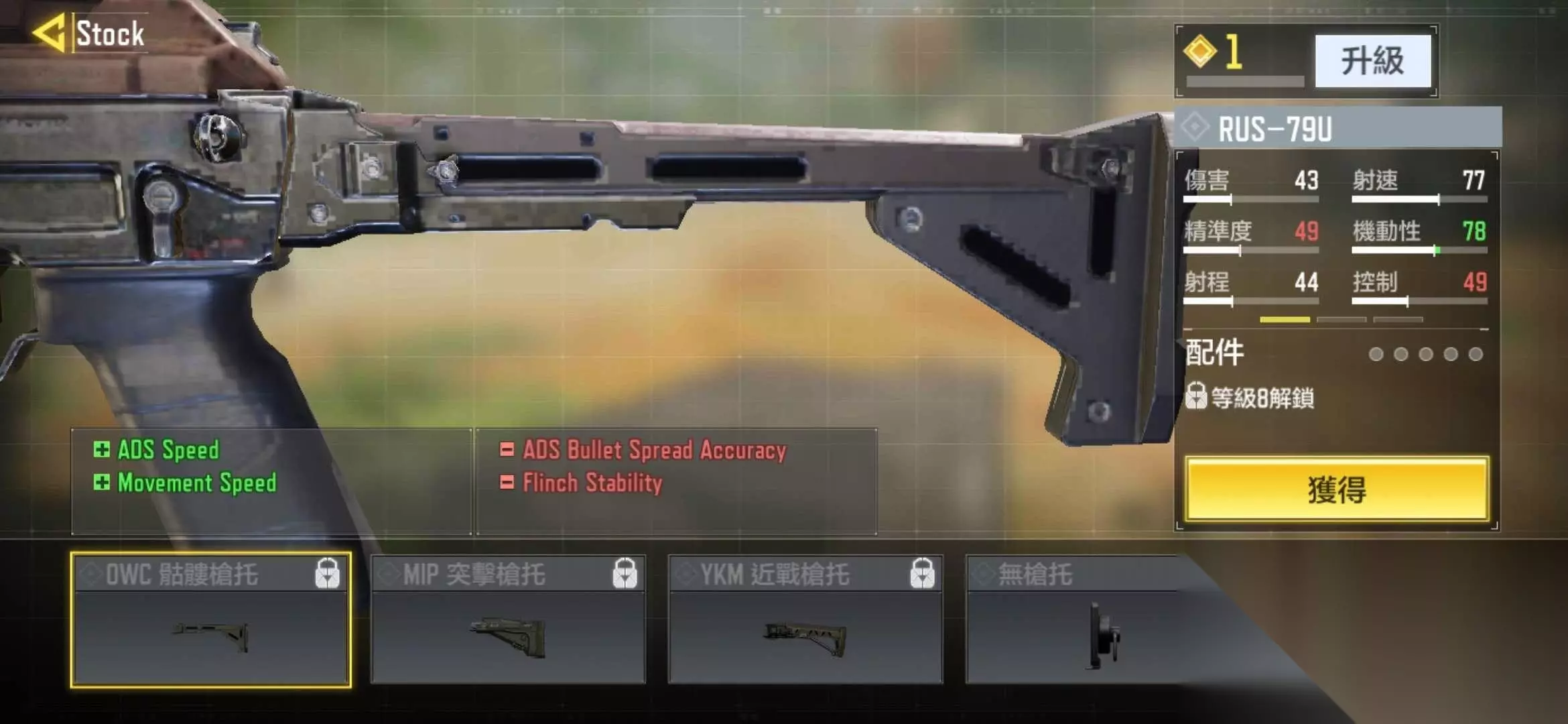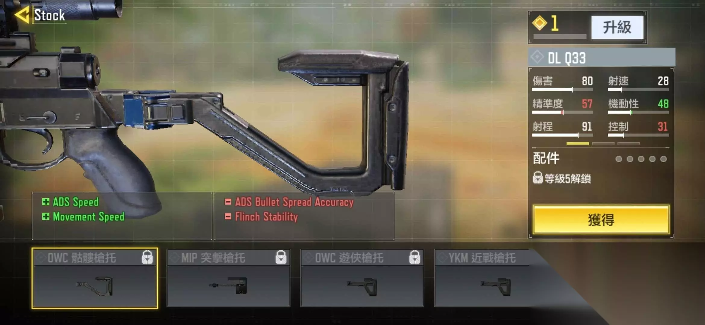 使命召唤手游中,玩家可以通过提高枪械的等级来解锁不同的配件。不同的配件会改变枪械的数值,带来不同的玩法,枪托作为主要配件之一,它更多地决定了使用枪械时的行进速度,使用不同的枪托将会有不一样的奔跑速度,从而决定了玩家的打法和策略:远程点射还是近程腰射。