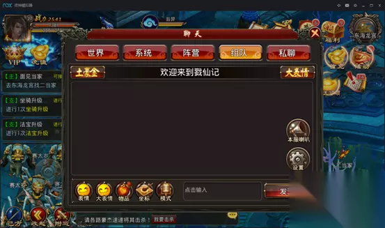 组队系统 游戏中常用功能,组队刷怪下副本必备。 进队可通过创建队伍或者搜索附近队伍申请进入。 队长可设置入队权限,也可通过仙友邀请、仙盟邀请、世界邀请邀请队员共战仙侠大陆