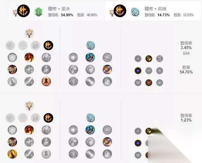 基石天赋选择征服者,增强剑姬的持续作战能力和输出,剑姬配合着本身打破破绽的回血在后期回血非常恐怖。 第二行天赋选择凯旋,剑姬是一个不太缺蓝的战士,凯旋会好一些。 第三行点出欢欣,使得剑姬攻速变快,后期能力增强。 第四行选择致命一击/坚毅不倒。帮助剑姬可以进行战场的收割和残血反杀。 副系一定要点出神奇之靴和饼干配送,增加剑姬发育的速度,快速迎来强势期。