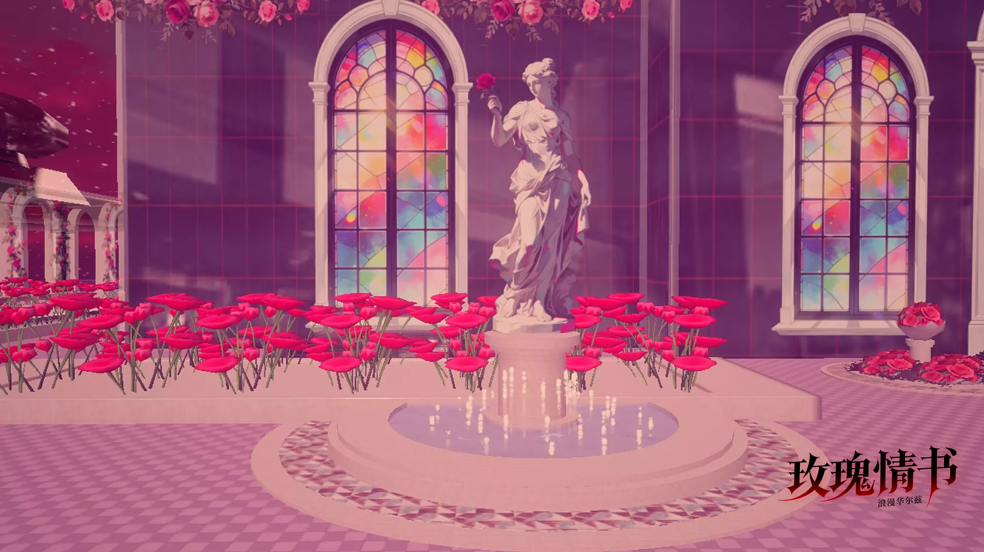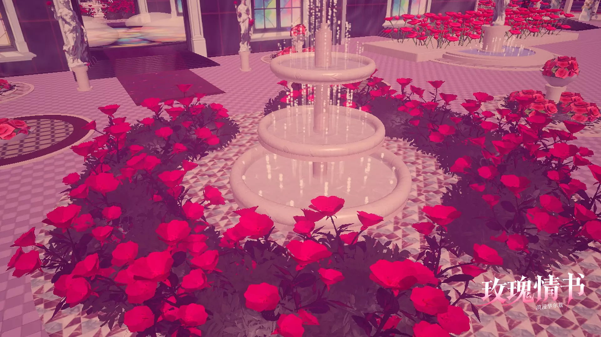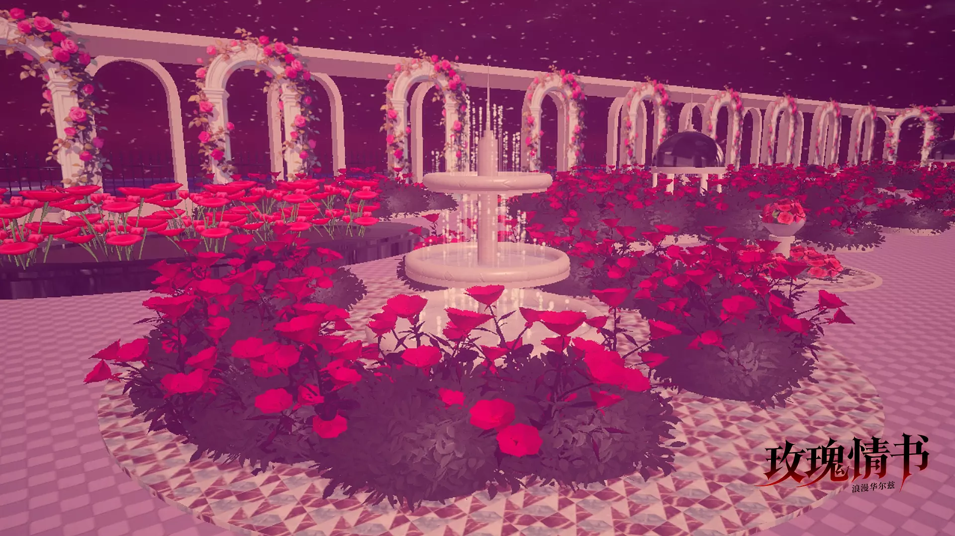 庭园内,大片鲜艳的玫红色花朵热烈盛放🥀