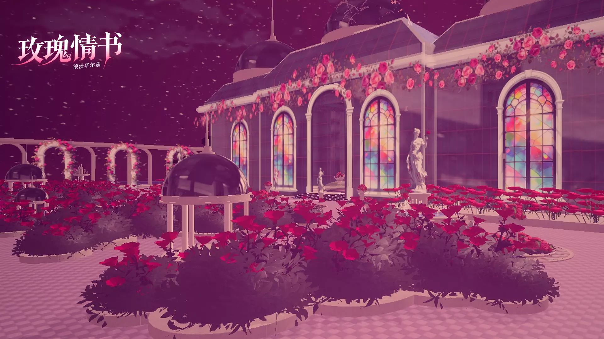 整个庭园被浓郁的玫紫色夜幕笼罩💜