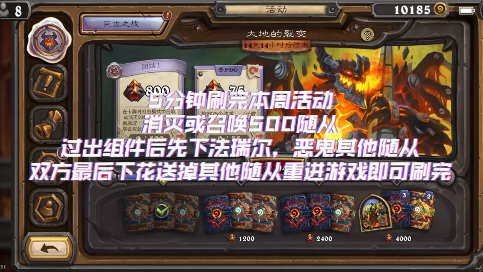 本次只用500个,永生花打休闲模式也挺快 更高效刷召唤任务 不过有很多注意事项:不要爆牌,先过组件,组件上手之后和对方说一下,清一下场面(1费法术)先下法瑞克和…