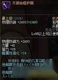 撑属性的装备,控好血很强大,但是控血本身就是个纠结活,装备是个好装备,具体选择与否看你能不能驾驭它吧 千蛛碎影之毒牙胸甲 削防,属性跟千蛛肩差不多,不多说,打团配合鬼泣食用风味绝佳 魔战无双胸甲