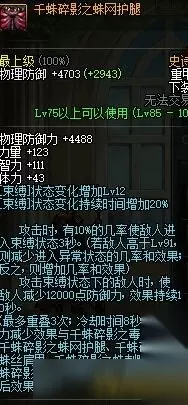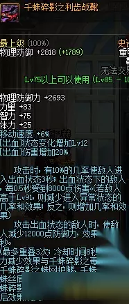 75物攻,中规中矩的三速根据自己的情况搭配吧,属于可选的一件装备 千蛛碎影之利齿战靴