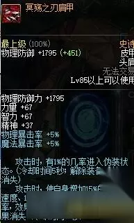 冥殇之刃肩甲 速度部位,中规中矩,没什么值得诟病的也没什么太亮眼的属性,可以选择但是随着装备越来越好会倾向于淘汰的装备