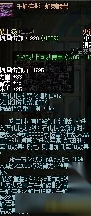 千蛛减防系列,地位不如其他部位,石化失去了破招输出加成,而且安图尼往上很多怪很难被石化。 魔战无双腰带