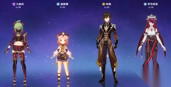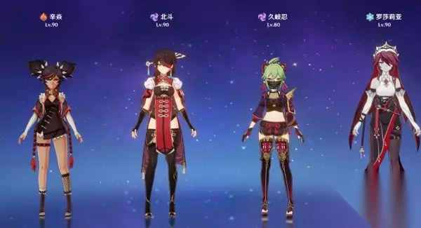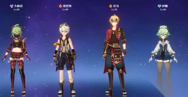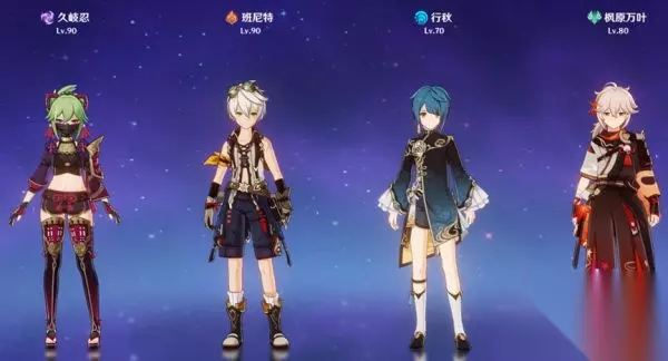 四象剑·水火风雷 四个单手剑角色组成的队伍,如果没有万叶可以用砂糖替代。久岐忍与行秋打出雷水感电,风系扩散,同时班尼特的元素爆发提供火属性附魔给久岐忍,打出三元素的组合反应。