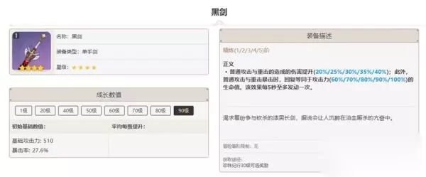 黑剑是大月卡奖励,高精难度较高,但是使用场景比匣里龙吟更加灵活,适用于物理、冰、火等不同的定位,提供暴击率也使得圣遗物的选择有更大的空间,且黑剑与小忍的外观搭配效果更好。