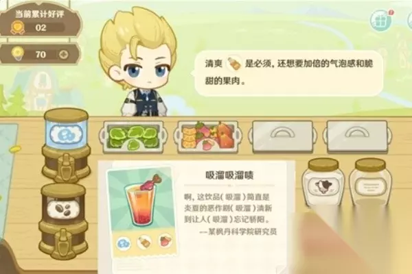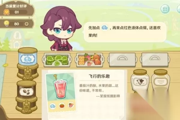 微风和煦,带着饮品餐车一起出门吧,原神游戏中的微风饮游活动正式开启啦,活动期间,旅行者可以通过每日登录原神、领取每日任务获取灵感值,灵感值可以用于尝试根据顾客的需求,制作不同配方的饮品。 原神微风饮游H5小游戏饮品制作配方是什么 飞行的乐趣 所需材料为:气泡水+番茄+果肉