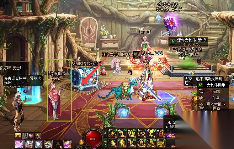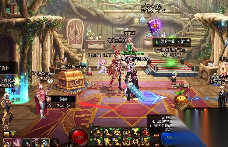 玩家可以在美罐这里租赁武器,方法如下: 进入游戏点击赛丽亚房间的美罐。