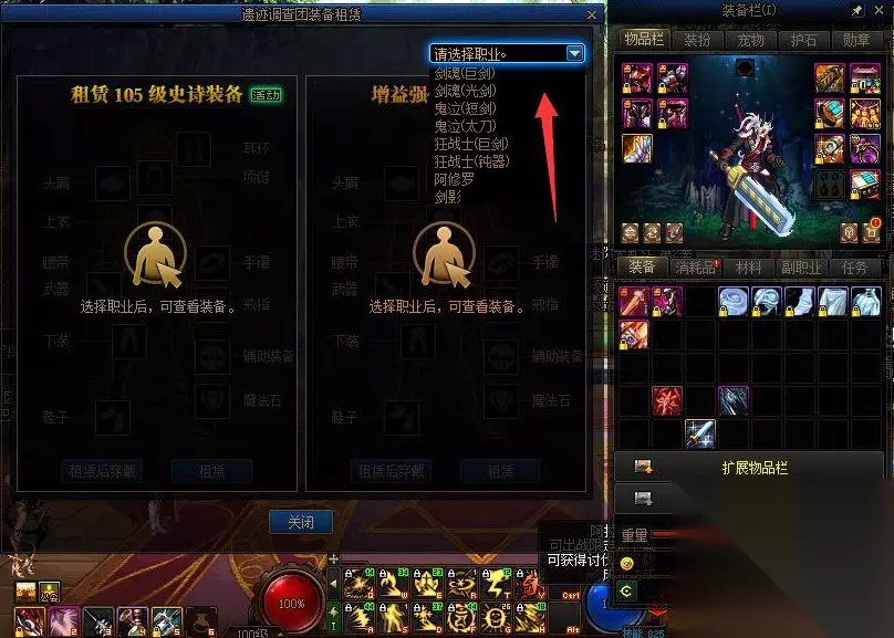 点击租赁装备即可。