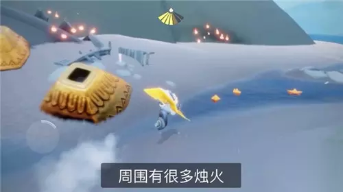 3、做完任务之后,还可以到旁边拿破船上的烛火,大家不要长时间停留在被污染的喷泉,会掉翅膀的能量。