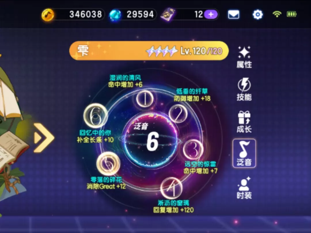 这是音游《节奏大师》的游戏内容展示,展示了新角色露儿,其技能可获得道具和st能量,还呈现了使用该角色游玩12级困难歌曲《错视艺术》的过程与结算数据。