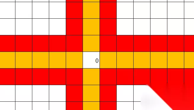 根据进出墙的玩法,我们要注意带来的特殊走法,比如部分封闭区域(或者正常走法无法进入区域),多半利用墙穿梭到达 额外的(1。如果穿墙的出墙位置有墙体,遮挡,那人物会卡住无法穿墙,(2.如果人在穿墙路径一直没有阻碍,就会一直行走,相当于死机了,必须重来,直接当作死路走法看 2.障碍机关:只有从它离开(包括行走时走过去)才会生成墙体 这种关卡多半用来行走到原本到不了的地方,需要注意路段卡死(多摸索几下走法,注意触发时机) 3.刺:一边不能触碰,三边可以触碰 相当于稍微改变了一下墙体效果,走的时候只需要注意不要碰到特别的一边 4.传送圈:正常会出现两个,只要踩到立刻传到另一个圈 需要注意进入圈的方向,就是比正常走复杂了一点,路径走法不是多难 5.融合砖块:两个对应的方块像撞就会消失 这个玩法比较灵活,需要多观察走位(1.不需要融合,借助找路或者阻挡伤害(2.需要融合,抵消获取新路 特别的,融合方块不能与宝石一起推,融合方块可以和人物一起穿墙 只有在以上方法熟知以后,我们就可以开始用排除法摸索路径了 排除法:根据关卡设计,去除错误的走向,最后剩下的就是正确的走法 其他说明: 1.当关卡盘面比较大,最好借助一些画图工具,标记好走向和死路等等,便于结合起来找到路径,否则当路径过于复杂时,对人脑的记忆和走法顺序安排是一个非常大的考验 2.下面提供一种反向看法,如果我们需要达到0的位置,按照常规走法,我们必须找到一个可以用来停止运动的方块,如图红色区域,既然我们需要到0的位置,我们就要让人物走到黄色的区域,并借助红色区域的某个方块停止