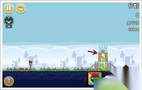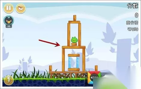 技巧:瞄准中间那根横杆,轻松做到首发就能将这关搞定哦~ 愤怒的小鸟之黑鸟来袭 第二关