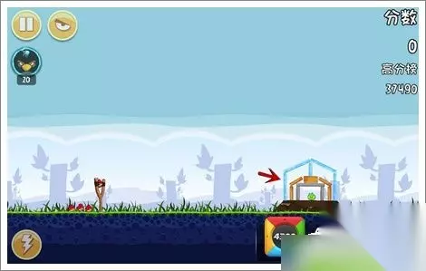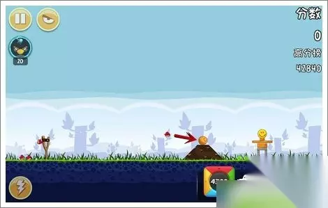 技巧:这一关直接打中圆球,让球滚下去后将小猪压扁,这样分数会比较高一点~ 愤怒的小鸟之黑鸟来袭 第四关