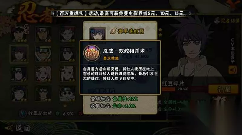 御手洗红豆在火影忍者手游中展现出了极高的可玩性,无论是新手玩家还是资深格斗爱好者,都能从她身上找到乐趣。