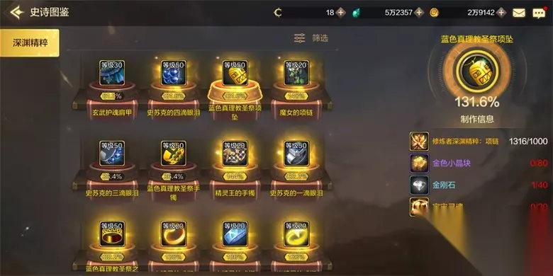 防具类: 30级防具史诗制作要求:熟练者深渊精粹:重甲/轻甲/皮甲/布甲-----75个;金色小金块----50个;铁片/碎骨/皮革碎片/布片----24个;宇宙灵魂----12个;金币----2.4W; 50级防具史诗制作要求:修炼者深渊精粹:重甲/轻甲/皮甲/布甲-----1000个;金色小金块----80个;铁片/碎骨/皮革碎片/布片---40个;宇宙灵魂----20个;金币----4W; 首饰类: 20级武器史诗制作要求:挑战者深渊精粹:手镯/项链/戒指-----25个;金色小金块----30个;金刚石----16个;宇宙灵魂----8个;金币----1.6W; 50级武器史诗制作要求:修炼者深渊精粹:手镯/项链/戒指-----1000个;金色小金块----80个;金刚石----40个;宇宙灵魂----20个;金币----4W; 这些材料在深渊,委托,剧情地下城等许多渠道都能够获取,获取方式多种多样,总有一款适合你,勇士们,不多说了,赛利亚催我守护阿拉德大陆了!