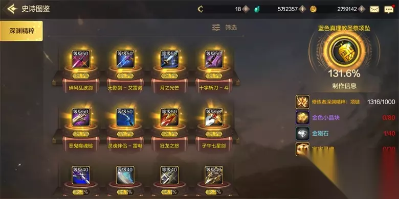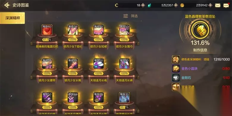 武器类: 40级武器史诗制作要求:熟练者深渊精粹:鬼剑士/神枪手/格斗家/魔法师-----150个;金色小金块----60个;元素结晶----32个;宇宙灵魂----16个;金币----3.2W; 50级武器史诗制作要求:修炼者深渊精粹:鬼剑士/神枪手/格斗家/魔法师-----1000个;金色小金块----80个;元素结晶----40个;宇宙灵魂----20个;金币----4W;